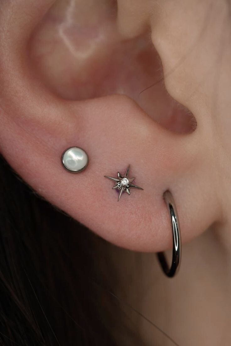 При двойном пирсинге мочки уха интересно смотрятся композиции из камней разных размеров (от большего к меньшему или наоборот)