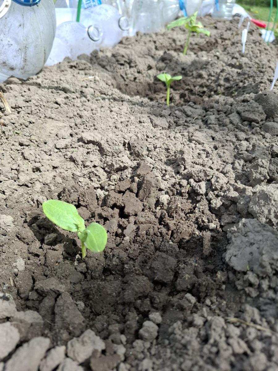 8 мая, огурцы в грунте под 4-х слойным укрытием все живы, хотя практически остановились в росте