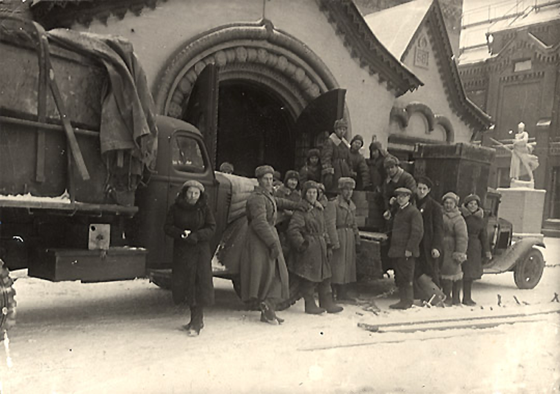 Третьяковская галерея, как и другие музеи, с самого начала войны начала подготовку к эвакуации. С утра и до поздней ночи сотрудники музея снимали картины и наматывали их на специальные рулоны для перевозки в другой город. И все время, пока музейщики упаковывали картины, посетители гуляли по галерее. «Очень хорошо помнится такой эпизод: мы в одном из залов пакуем и пломбируем очередные ящики, а в соседнем зале – Васнецова, идет экскурсия для отбывающих на фронт солдат», – вспоминала военные годы искусствовед Софья Гольдштейн.