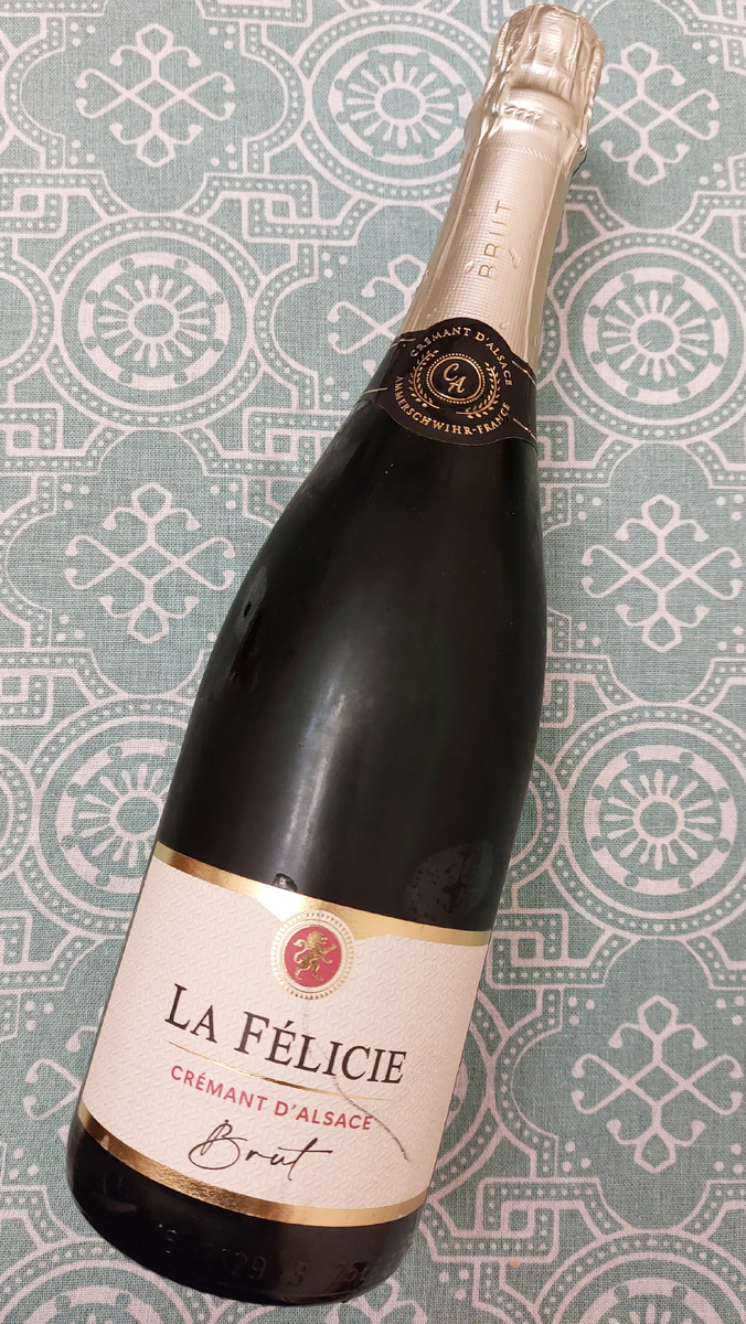 Гастрономические и экологические эксперименты порой приводят к неожиданному. Однажды немного разобравшись и приняв для себя определенные выводы и факты, сложно переосмысливать нечто такое, что выходит за рамки понятных рамок. А, согласитесь, настоящий креман из Франции по цене дешевле 1000 рублей способен такие рамки сильно расширить и причинить, как минимум, приятное удивление. Разумеется, соблазну противостоять было невозможно. Поэтому сегодня я расскажу Вам про этот удивительный экземпляр, Cremant d'Alsace La Felicie brut 2021. Вино продается в традиционной шампанской бутылке, никаких сюрпризов. Этикетка максимально простая. Тут сложно что-то комментировать. Впрочем, она приятна текстурная, как этикетки вин Нового Света. Укупорена бутылка приличной комбинированной пробкой, мюзле относительно хлипкое, плакетка с указанием региона, как и пробка. При этом фольга капсулы сверху имеет наклейку зелёного цвета с головой Марианны, символом французской Республики. Это означает, что за бут
