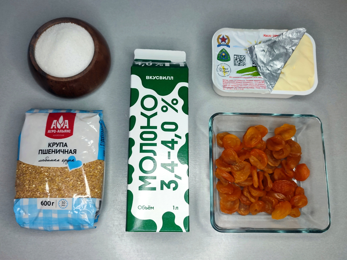 С детства люблю молочные каши, приготовленные в духовке. Каши моей бабушки были просто прекрасны! С темной молочной корочкой сверху! Это же просто деликатес) Жаль ,что уже не смогу поблагодарить бабушку за такое теплое воспоминание из детства, но могу подарить вкусные эмоции своему ребенку! Пшеничную кашу я решила немного разнообразить курагой. Во-первых, попалась ну очень вкусная курага на рынке, а, во-вторых надо чем-то подсластить вместо сахара. Но сахара совсем чуть-чуть все-таки добавила. Курагу режу на половинки- четвертинки в зависимости от размера сухофрукта. В форму выкладываю промытую крупу, курагу, сахар, соль, заливаю молоком , аккуратно перемешиваю, добавляю масло. Отправляю в духовку разогретую до 180 гр на 1 час. Курага достаточно подсластила кашу и немного украсила своей кислинкой привычный вкус. Нам понравилось! Каши по утрам мы не едим, но на ужин - с удовольствием ! А какие добавки к каше Вы делаете? Недавно в духовке готовила блинную запеканку, она отл