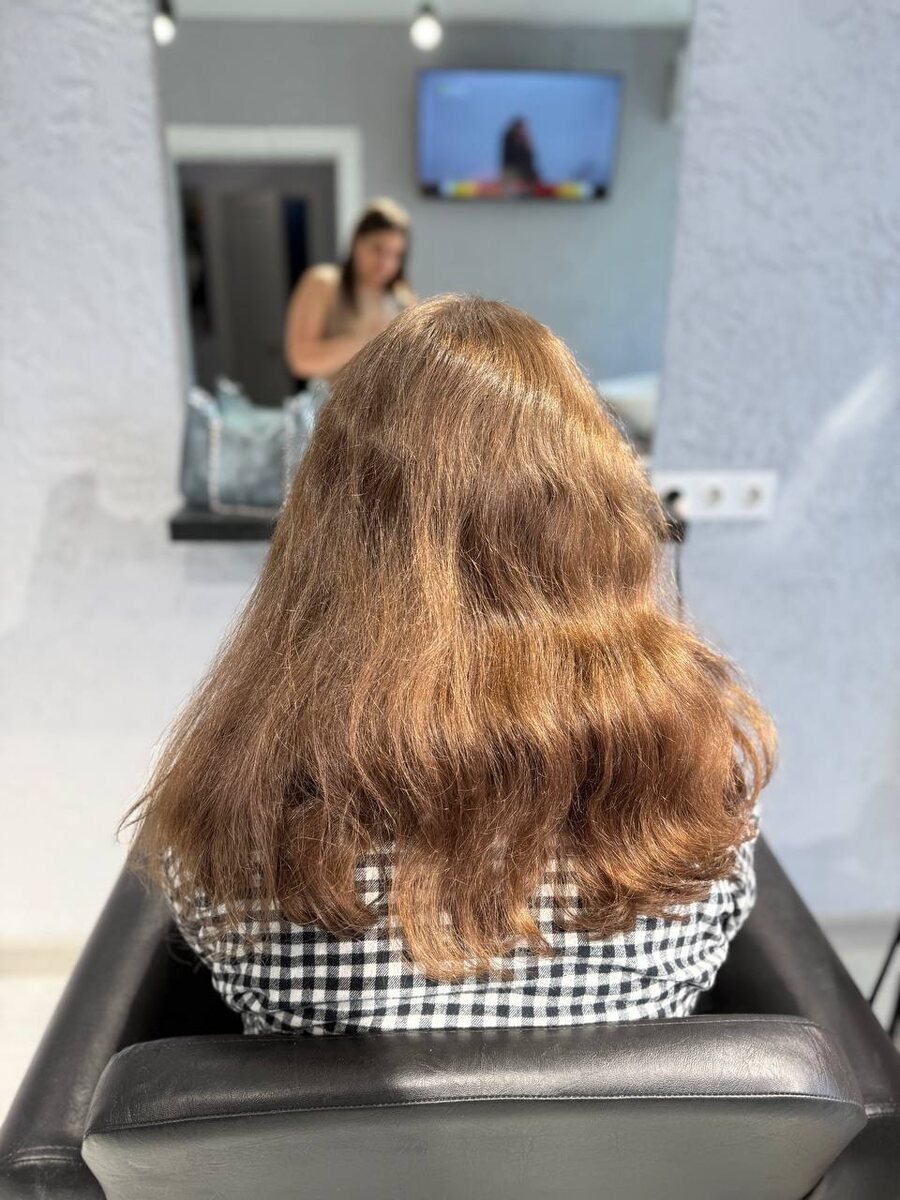 А это Дарья. Посещала меня пару лет назад, потом юношеский максимализм привел волосы к фиолетовому оттенку 🫣 было осветление по всей длине. Кудри, пух, сухость, ломкость … полный комплект!