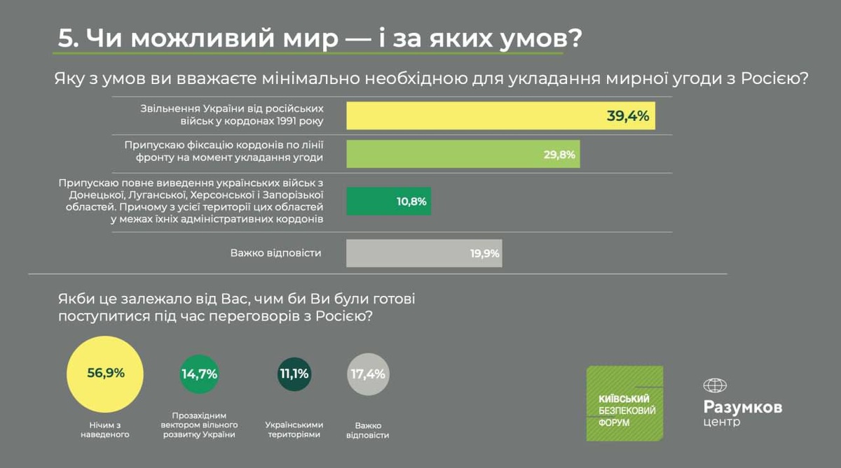 🕊️🇺🇦🕊️ Центр Разумкова выкатил результаты опроса, приуроченного к ежегодному Киевскому форуму безопасности, про условия мира