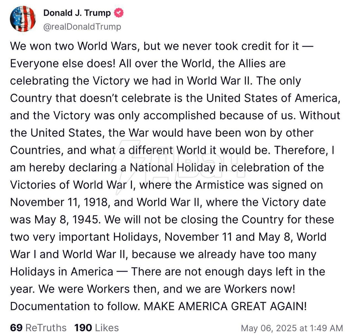 Трамп прав в одном, США, как страна, которая по сути стала инициатором двух мировых войн, больше всего на них и заработала. В некоторой мере, это можно считать победой, 10 000 тонн золота и 30% мировой экономики были оплачены кровью 100 миллионов человек.