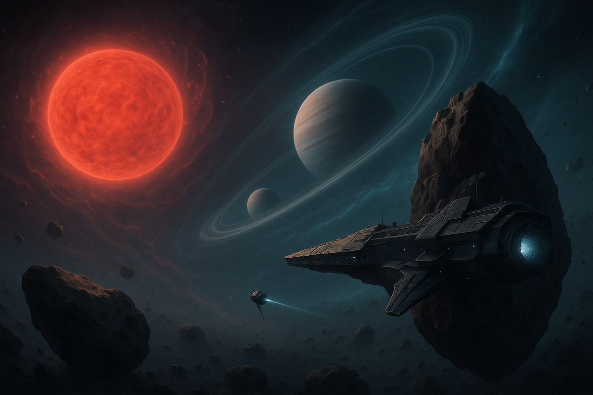 Астромеханик с готовностью кивнул, спиной чувствуя тяжелые взгляды. Старший Инженер направился к своему рабочему месту. Запуск тяжелого межпланетного зонда “Афармис” - довольно скучное занятие. В свое время Талламэр создал их столько, что даже новейшие крейсеры оборудуются этими динозаврами. Ни искусственного интеллекта, ни конвертера массы в двигателях, ни поддержки нейроинтерфейса. Все приходилось делать вручную. Порядок исполнения был прост, но занимал много времени. Пока Старший Инженер занимался зондом, Астромеханик приступил к обработке данных гравитационного радара. Гравар пока сумел засечь менее четверти массы системы - даже одиночный красный гигант, являющийся центром тяготения, пока еще не был вычислен. Однако векторы гравитационных искажений позволяли различить на экране “пасынка” - типичного газового толстячка на отшибе системы, по крайней мере две каменных планеты, основной астероидный пояс, несколько газовых шаров, ледяные и метановые кометы. Денеб-18 был прост и предсказуем. Капитан спросил: