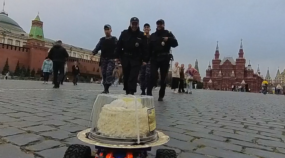 С захватывающим ускорением «Машинка Добра» поехала по Красной площади. Люди смотрели, улыбались, узнавая её. А сотрудники, приближаясь, тоже не могли скрыть свою улыбку. Росгвардейцы узнали машинку и, сдерживая улыбки, немного отошли в сторону. Один из полицейских, с любопытством, спросил: «Что это?» Но никто не мог ожидать, что на торте будет написано «Спасибо за службу!»