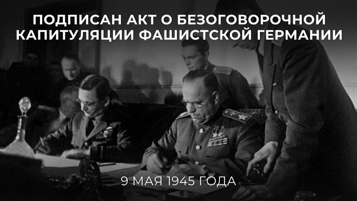 80 лет назад — в ночь с 8 на 9 мая 1945 года в 0.43 по московскому времени был подписан Акт о безоговорочной капитуляции фашистской