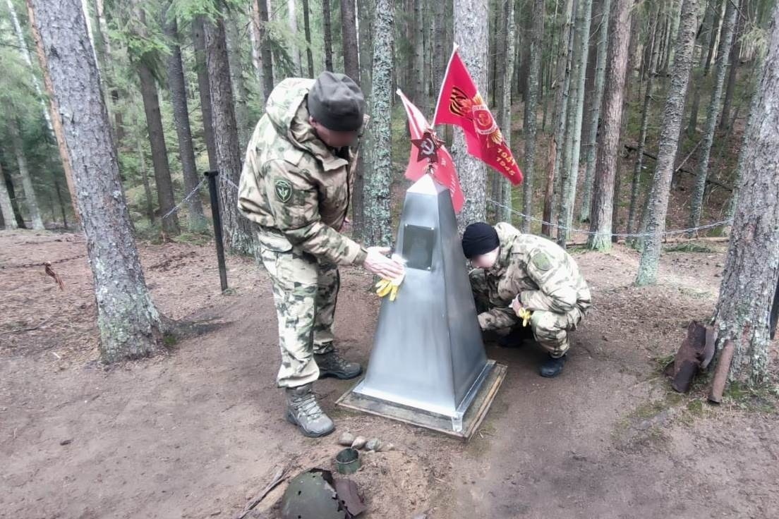 Сотрудники ОМОН "Балтика" (на транспорте) Главного управления Росгвардии по г.Санкт-Петербургу и Ленинградской области в преддверии Дня Победы почтили память воинов Красной армии, погибших в ходе Выборгской наступательной операции. Небольшой памятник, установленный у захоронения неизвестных советских воинов, находится в лесном массиве вблизи Юкковского сельского поселения во Всеволожском районе Ленобласти. В этом месте 10 июня 1944 года 15 бойцов-красноармейцев вступили в свой последний бой с финскими войсками, воевавшими на стороне фашистской Германии. В 2016 году останки безымянных героев были найдены и захоронены. Сотрудники ОМОН "Балтика" Росгвардии провели уборку территории захоронения, возложили к памятнику цветы и почтили память павших воинов минутой молчания.