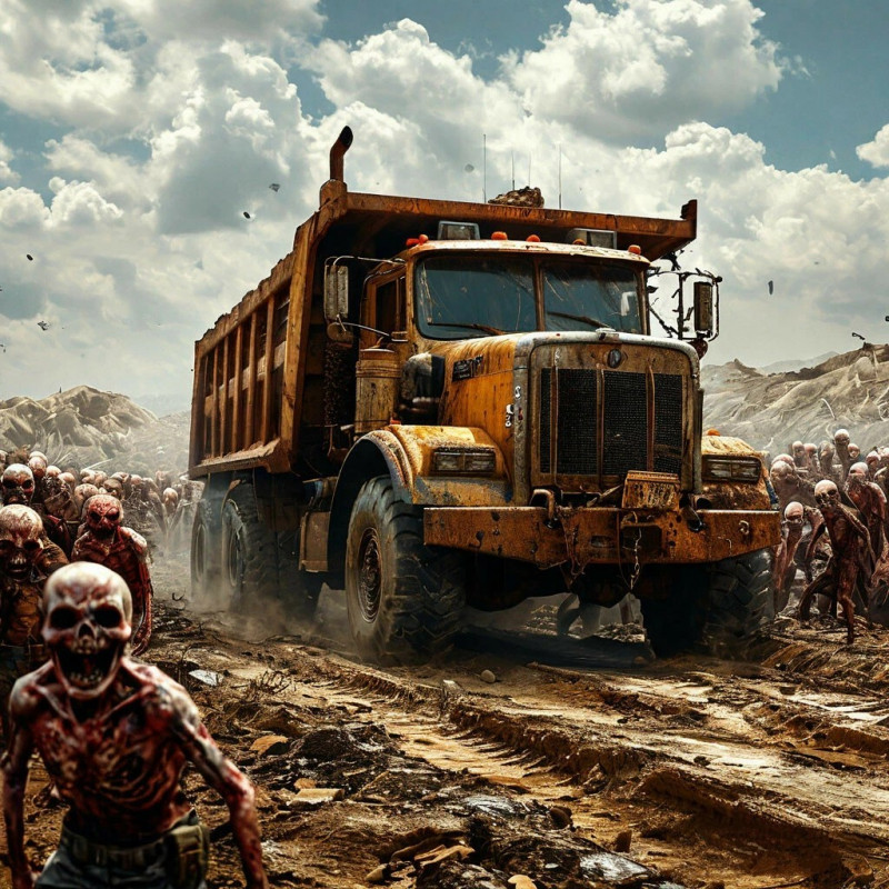 Большой грузовик с кузовом и прицепом, яростно рыча мотором, вывернул в сторону бомбоубежища, вылетев из самой глубины заброшенных садов, откуда сейчас валили заметно поредевшие, но все еще многочисленные толпы мертвых. Тяжелая машина и прицеп, начиная от колес до самого верха были испачканы кроваво-красной жижей, о происхождении которой было несложно догадаться. Она ехала прямо сквозь разрозненные скопления жмуров, давя и отбрасывая их в стороны.