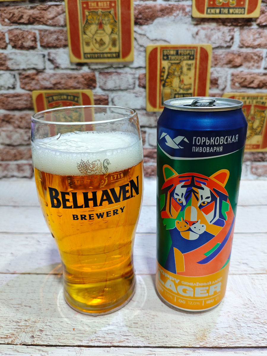 Собственно... Охмелённый лагер. Изготовитель: ООО "Пивоваренная компания "Балтика", г. Санкт-Петербург. Постоянная надпись: "Сварено и разлито под контролем пивоваров "Горьковской пивоварни" - отсутствует. Из забавного: на сайте пивоварни этот сорт до сих пор не появился. Зато на самой банке имеется небольшое описание: С этой банки на вас смотрит тигр. Этот сильный и яркий зверь знает, чего хочет, и всегда получает лучшее. Охмелённый лагер от Горьковской сочетает в себе лучшее, что может быть в пиве - лёгкость и баланс лагера и удивительную ароматику хмелей с цитрусовыми и еловыми нотками. Откройте охмелённый лагер от Горьковской пивоварни, откройтесь новому! ********************************************************************************** Плотность: 12%. Горечь: 21. Состав: вода питьевая очищенная, солод пивоваренный ячменный светлый и карамельный, хмелепродукты. Срок годности: 12 месяцев при температуре хранения от 0℃ до +30℃. С даты розлива моей банки прошёл один месяц. ***********