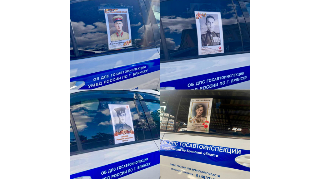 Сотрудники Госавтоинспекции Брянской области разместили на служебных автомобилях фотографии своих героических предков. Эта инициатива стала символом благодарности и личной памяти о тех, кто ценой своей жизни отстоял свободу и мир на родной земле. Портреты героев, украшенные Георгиевскими лентами и символикой Победы, стали неотъемлемой частью служебных автомобилей, напоминая каждому участнику дорожного движения о героизме, мужестве и самоотверженности военного поколения. Патрульные машины с изображениями ветеранов вызвали живой отклик у жителей и гостей региона. Таким образом сотрудники Госавтоинспекции не только почтили память защитников Отечества, но и подчеркнули важность сохранения исторической правды, преемственности поколений и уважения к тем, благодаря кому мы живём под мирным небом. Брянские автоинспекторы провели акцию в честь 80-летия Великой Победы