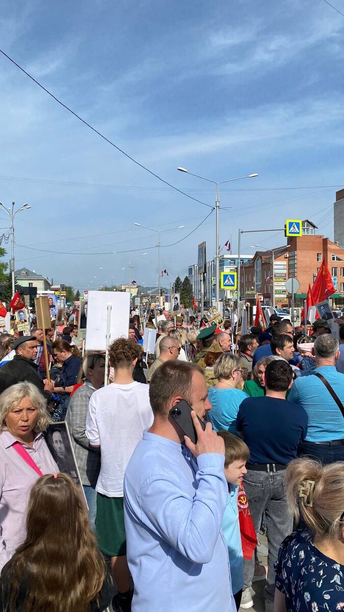 Идет построение Бессмертного полка. Совсем скоро бердчане торжественно пройдут от площади Горького до Монумента Славы.
