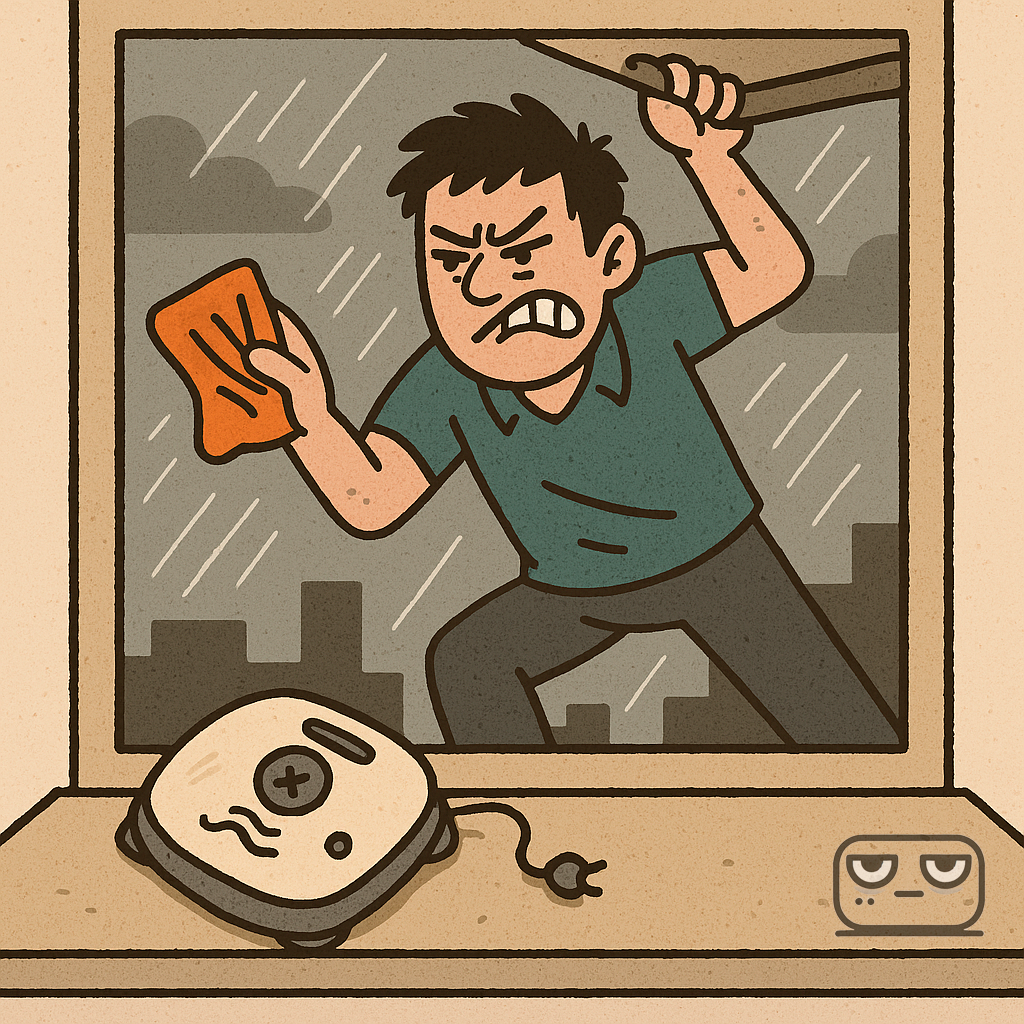 Технический прогресс подарил нам роботов-мойщиков окон. Правда, все отзывы так себе: то он не держится на грязном стекле и отваливается (и, вероятно, купленный на твои кровные может