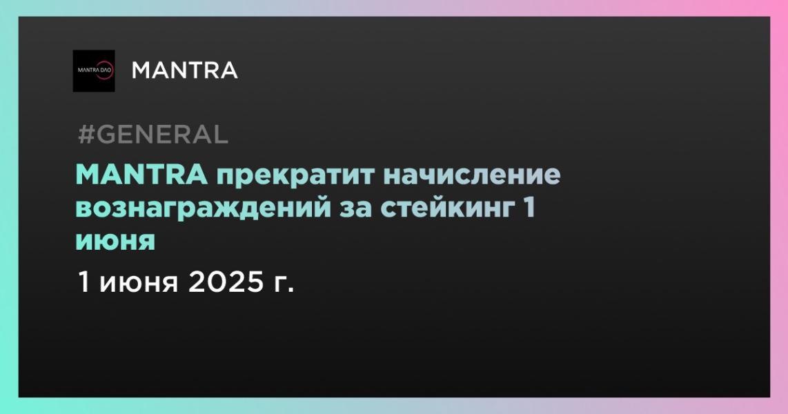 MANTRA прекратит начисление вознаграждений за стейкинг 1 июня