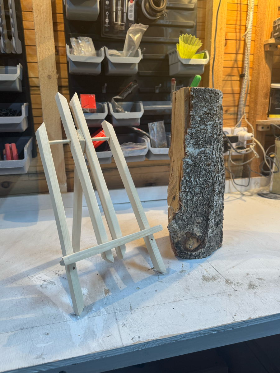 Береза — отличный выбор для мольберта, так как она легкая и прочная. Я начал с березового бревна, которое расколол топором и обстругал, почти как Буратино! 😄 Это придает дереву естественный вид и текстуру. Береза — отличный выбор для мольберта, так как она легкая и прочная.