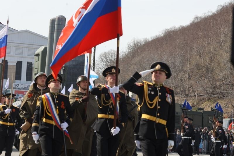 По главной площади краевого центра торжественным маршем прошли военнослужащие различных родов войск, дислоцирующихся на Камчатке. Парад принимал командующий войсками и силами на Северо-Востоке России, вице-адмирал Александр Юлдашев.