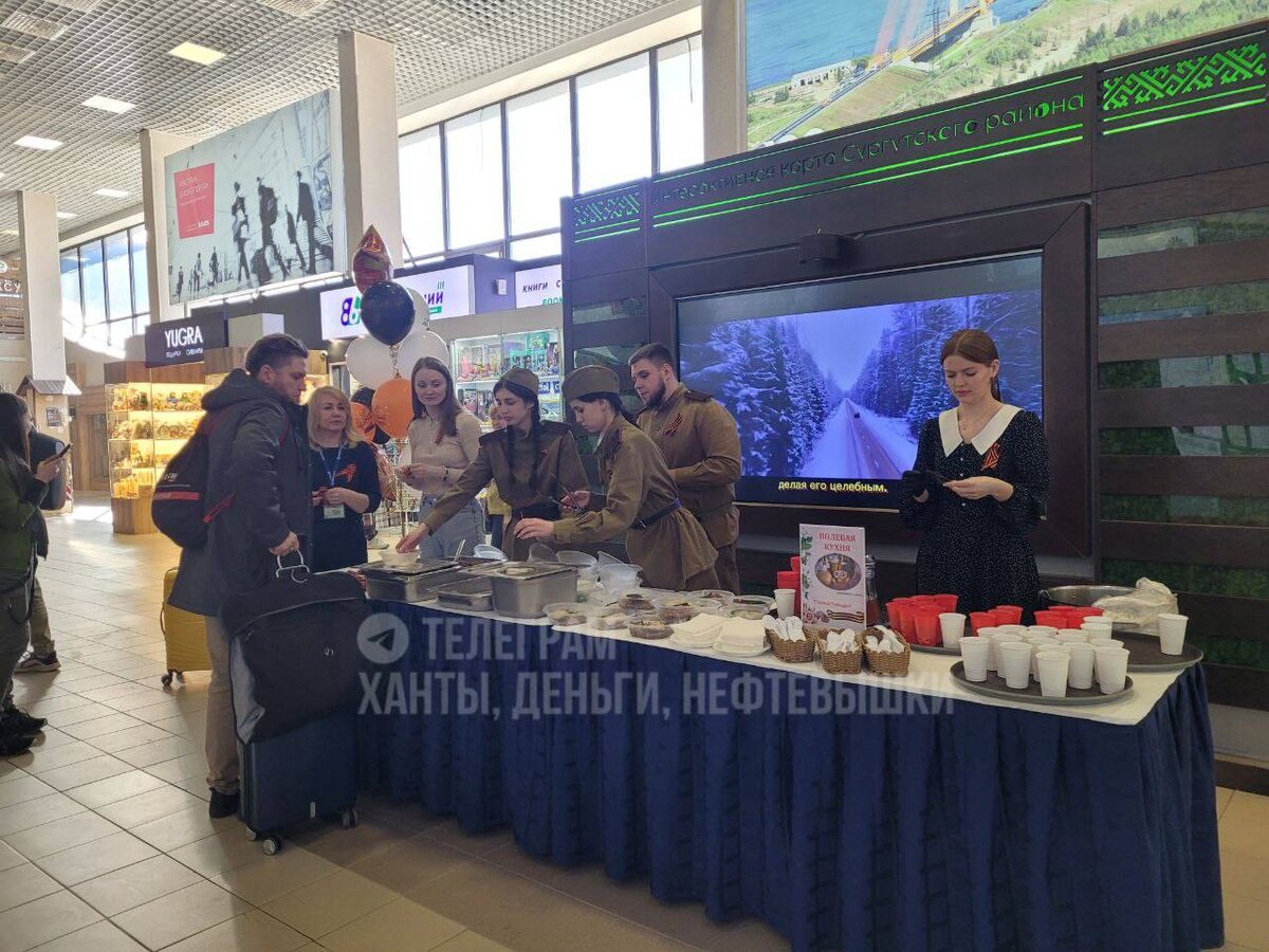 🥣 Фронтовой кашей угощают в зале регистрации сургутского аэропорта