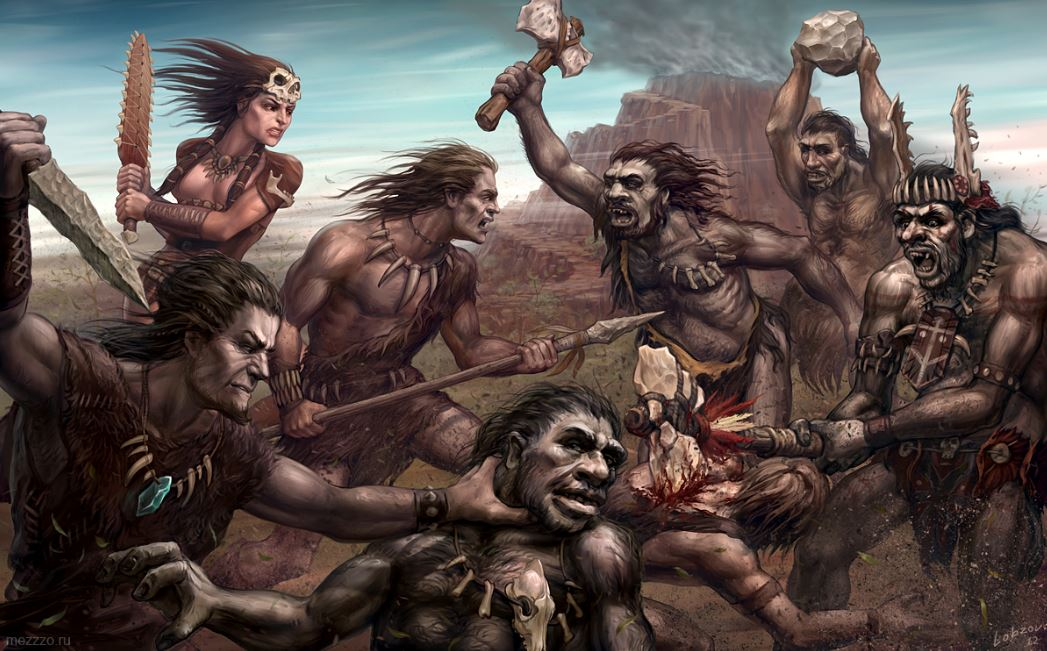 Похоже, что склонность к выяснению отношений силовыми методами – штука древняя, как сам род человеческий. Конечно, в глубоком палеолите, когда наши предки бродили небольшими группами по бескрайним просторам, собирая коренья да гоняясь за мамонтами, поводов для масштабных побоищ было не так уж много. Территории обширны, плотность населения – кот наплакал (по некоторым оценкам, на несколько квадратных километров приходился один человек). Главной заботой было выживание, борьба с голодом, холодом и хищниками, которые и сами были не прочь полакомиться свежей человечинкой. Но даже тогда, вероятно, случались стычки. За особо удачное охотничье угодье, за доступ к источнику воды, за самок, в конце концов, – причин для локального мордобоя могло найтись предостаточно.