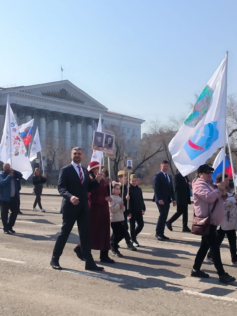 К колонне Забайкальского волонтерского корпуса с портретом своих героев присоединился и губернатор Александр Осипов. Вместе с супругой он идет бок о бок с забайкальцами. 🟦 Подписаться