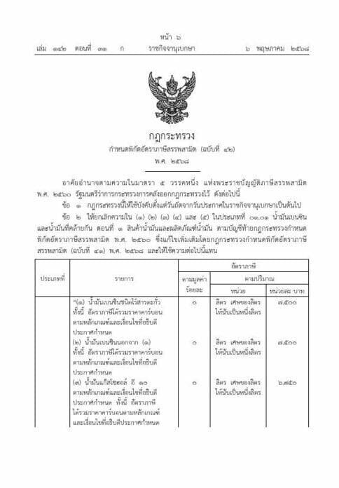 Таиланд повышает налоги на бензин и дизель на фоне снижения мировых цен на нефть Водителям в Таиланде стоит готовиться к росту цен на топливо: правительство официально объявило о повышении акцизов на бензин и дизельное топливо в ответ на падение мировых цен на нефть. Нововведение закреплено в постановлении министерства, опубликованном в Королевской газете, и вступило в силу 7 мая. 🌴 Прислать новость | Подписаться | Смотреть другие новости