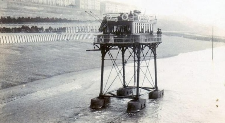 Представьте себе прогулку на поезде… по морю. Не вдоль берега, не на мосту, а прямо поверх воды, где под вами плещутся волны, а чайки пролетают на уровне глаз. Это не фантазия из стимпанковского романа, а реальный исторический проект конца XIX века под названием Daddy Long-Legs (Папаша Длиные Ноги) — прозвище, которое навсегда закрепилось за одной из самых эксцентричных железных дорог в истории. Официально она называлась Brighton and Rottingdean Seashore Electric Railway и пролегала вдоль берега Ла-Манша, между английскими курортами Брайтон и Роттингдин. Работала она всего пять лет, с 1896 по 1901 год, но успела оставить яркий след в инженерной и культурной памяти страны. Автором этой безумно красивой идеи стал Магнус Волк — изобретатель, энтузиаст и пионер электрического транспорта. Именно он спроектировал «Пионера» — вагон, который внешне напоминал трамвай, поднятый на длинные металлические ноги. Дизайн действительно был похож на морского паука: вагон ехал по рельсам, проложенным на