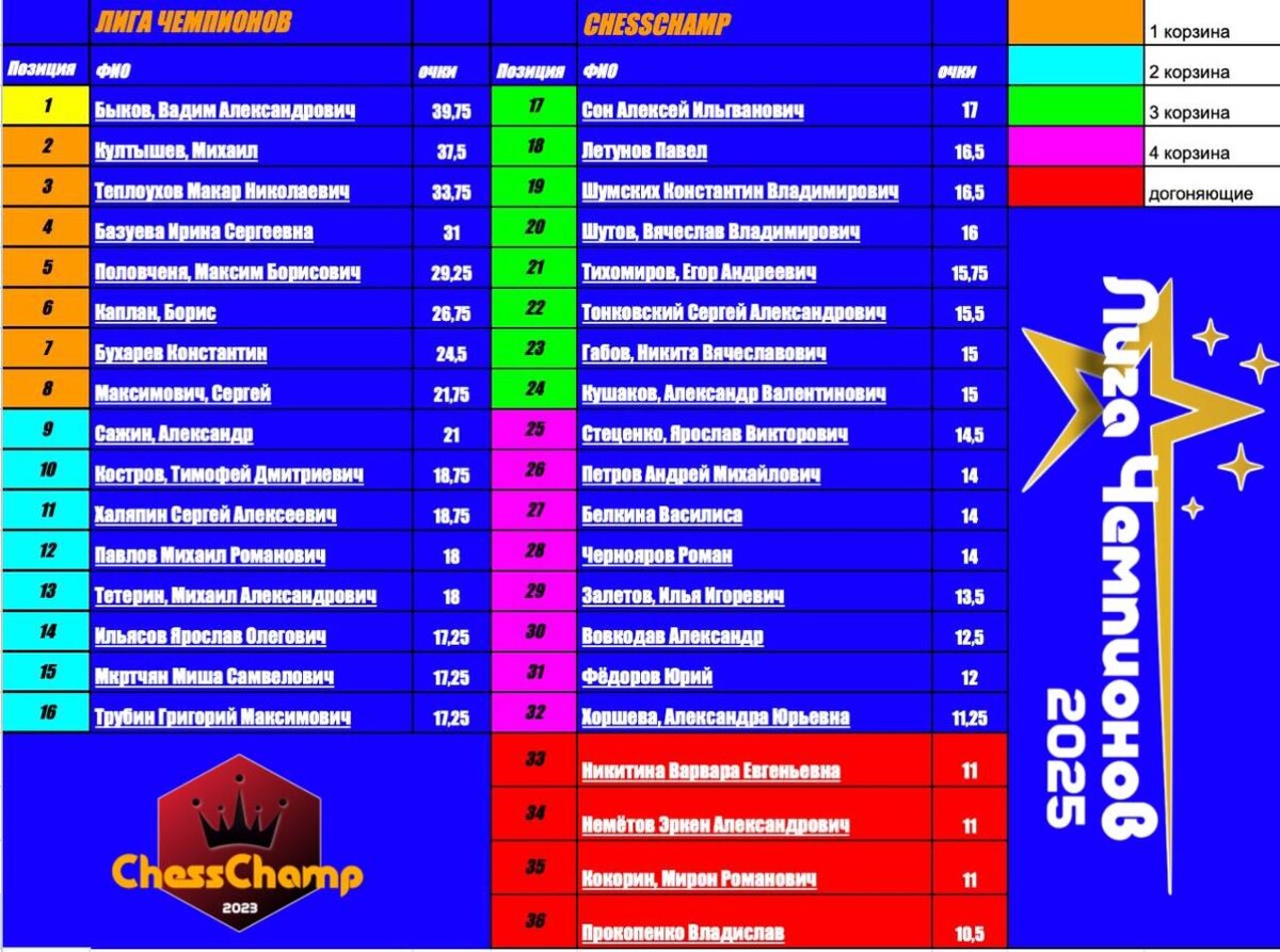 ⭐️⭐️⭐️Актуальная таблица «Лиги Чемпионов» - Сильнейших игроков «ChessChamp» перед заключительном туром отборочного этапа