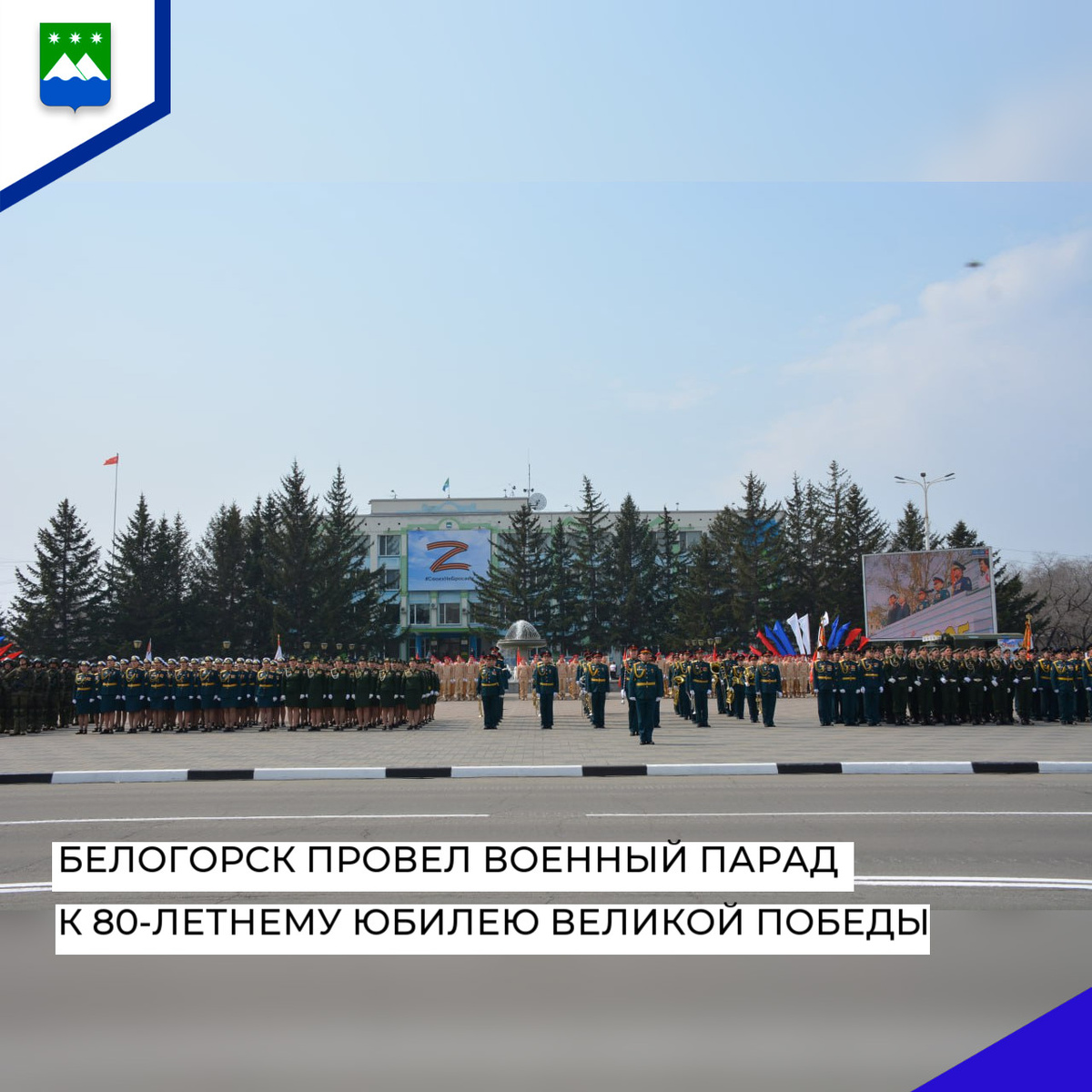 В Белогорске состоялся военный парад к 80-й годовщине Победы в Великой Отечественной войне. Его участниками стали около 12 тысяч человек. В их числе участник Великой Отечественной войны Павел Зосимович Горемыкин, сенатор Совета Федерации от Амурской области Артем Шейкин, зампредседателя правительства региона Андрей Дюмин, глава Белогорска Станислав Мелюков. Фоторепортаж на белогорск.рф в разделе «В объективе» (http://foto.belogorck.ru/2025/1003-parad-pobedi-2025). Принимал парад войск Белогорского гарнизона исполняющий обязанности командующего 35 Армии полковник Юрий Медведев. — Сегодня мы празднуем 80-ю юбилейную годовщину Победы в Великой Отечественной войне, — сказал он. — Праздник, величие которого определил сам народ своим беспримерным подвигом спасения Отечества и героическим, решающим вкладом в разгром фашизма. Мы обязаны помнить, что эта Победа добыта ценой огромных невосполнимых потерь. Сегодня мы скорбим о тех миллионах жизней, о тех, кто отдал свою жизнь во имя победы. Мы бу