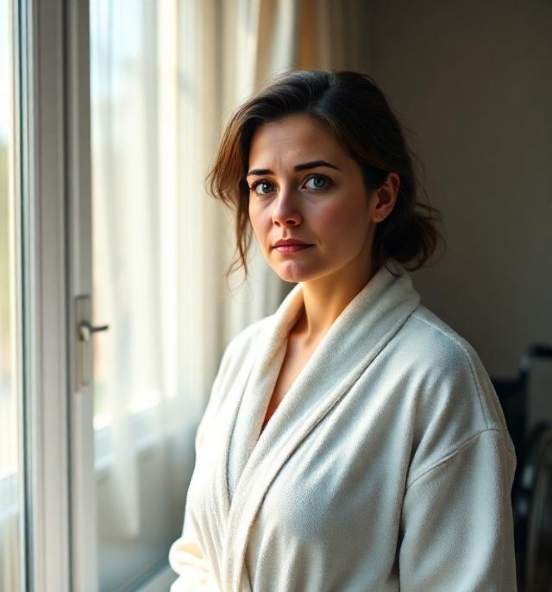 Анна молча прошла в комнату, где в инвалидном кресле сидел отец — когда-то крупный, властный мужчина, теперь почти высохший, но с тем же требовательным взглядом.