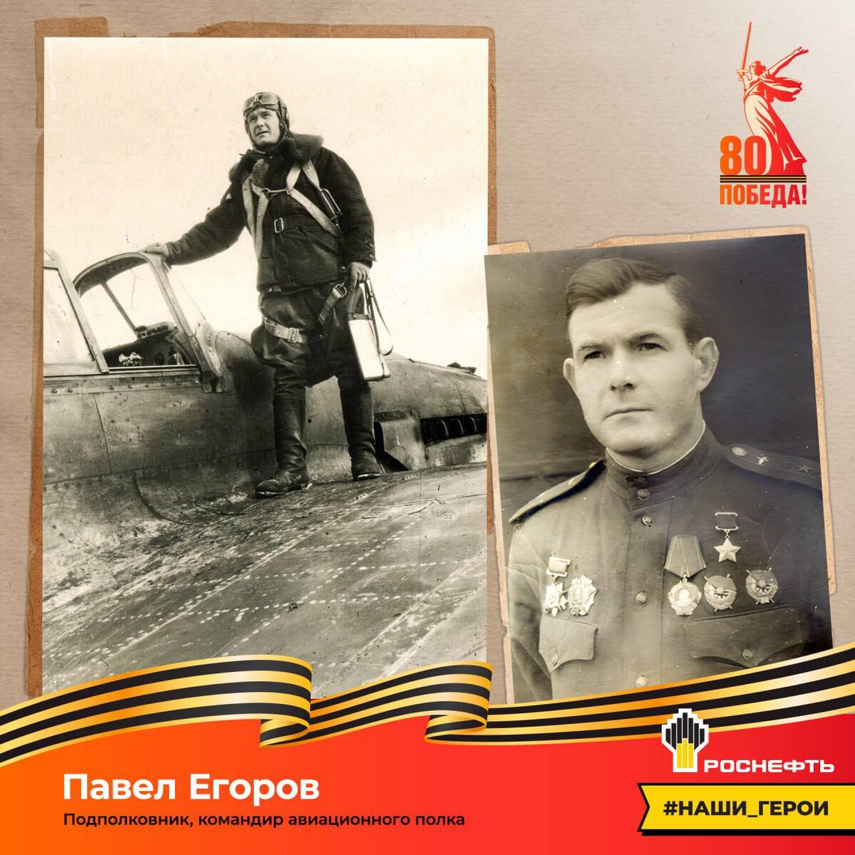 В День Победы делимся историей легендарного лётчика-штурмовика. На фото — Павел Васильевич Егоров, Герой Советского Союза, подполковник, воевал в составе 62 штурмового авиационного полка (шап) 233 штурмовой авиадивизии на Западном и 2-м Белорусском фронтах. Уникальный снимок, хранящийся в семейном альбоме Егоровых, сделан в лётном полку в 1944 году для заметки в газету, после был вручен Павлу Васильевичу. Павел Егоров прошёл путь от рядового до командира полка. За годы войны совершил 149 боевых вылетов: на его счету 8 самолётов, 50 автомашин, 14 танков, 16 железнодорожных вагонов и железнодорожный мост. Неоднократно Павел Егоров попадал и под огонь противника: четыре раза успешно сажал самолёт, загоревшийся в воздухе, в режиме аварийной посадки. Осуществлял фотосъёмку, бомбил секретные объекты, сажал самолёт после успешно выполненных заданий на фюзеляж вне аэродромов. Павел Васильевич участвовал в боях у Кезлина, Остероде, Свинемюнде, Данцига, Штеттина. Штурмовой авиаполк, которым руко