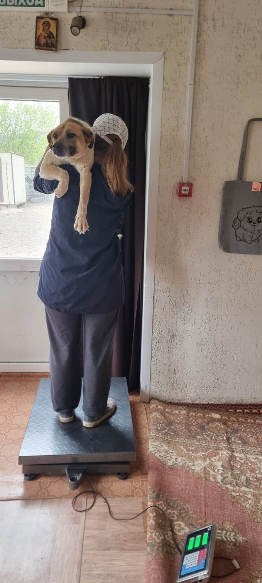 Чем мы ещё можем заниматься? Взвешиваем собак перед вакцинацией