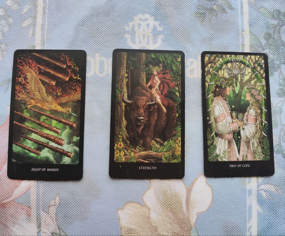 🌟 Дорогие друзья! Сегодня, в этот особенный день, мы заглянем в мир Таро Славянских Легенд и откроем для себя три мощные карты: Восьмёрка Жезлов, Сила и Двойка Кубков. Давайте вместе исследовать их значения, положительные и отрицательные стороны, а также то, как они могут повлиять на наш день! 💪💖 1 карта. Восьмёрка Жезлов ⚡ Положительные стороны: Восьмёрка Жезлов — это олицетворение стремительности и динамики. Эта карта говорит о том, что сегодня может произойти что-то быстрое и неожиданное. Вы можете получить важные новости, которые резко изменят ваши планы. Всё движется как по маслу, и вы оказываетесь в центре событий! 🚀 Будьте готовы к изменениям и не упустите шанс на новое начало. Как говорится, "кто не рискует, тот не пьёт шампанского!" 🍾 Отрицательные стороны: Однако, когда всё происходит слишком быстро, это может привести к путанице и стрессу. Не позволяйте суете затмить ваше восприятие — иногда стоит сделать шаг назад и оценить ситуацию. Помните, что не всё, что блестит,
