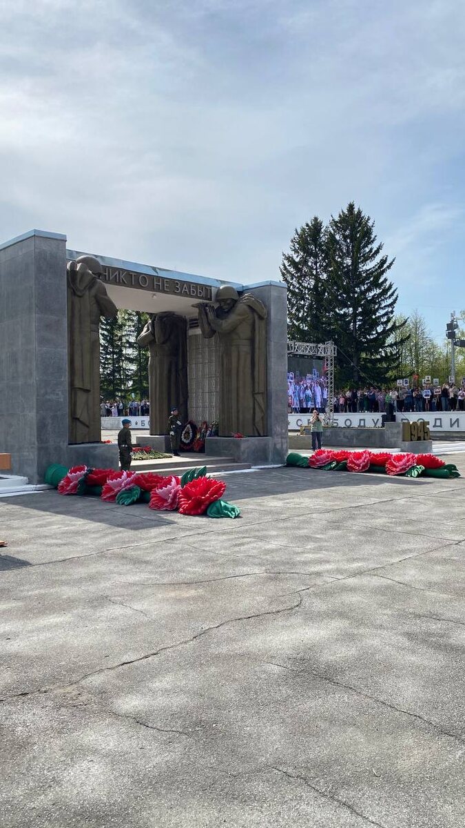 Участники Бессмертного Полка прибывают на Мемориал Славы, где в 12:00 состоится Час Памяти и возложение цветов к Вечному Огню