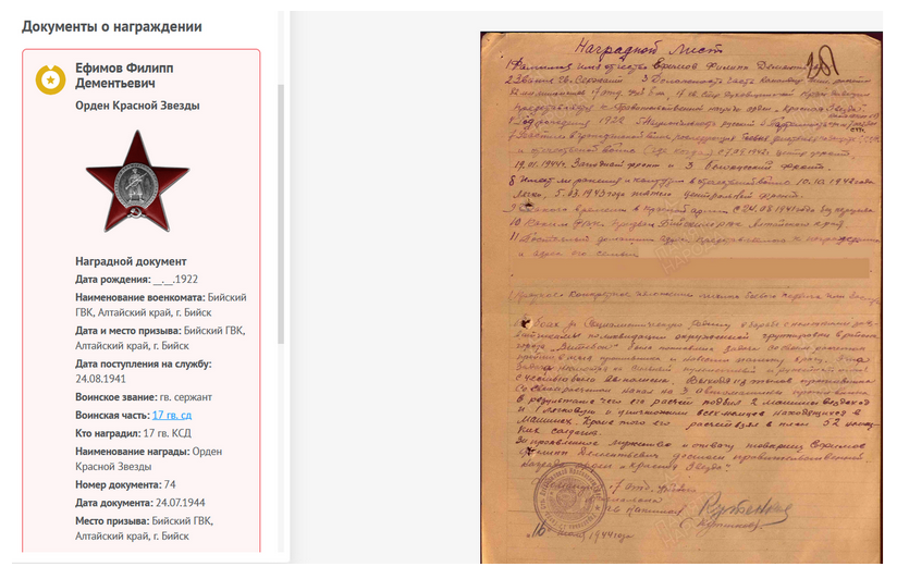 дядя, брат отца Филипп Ефимов, герой, погибший в 22 года