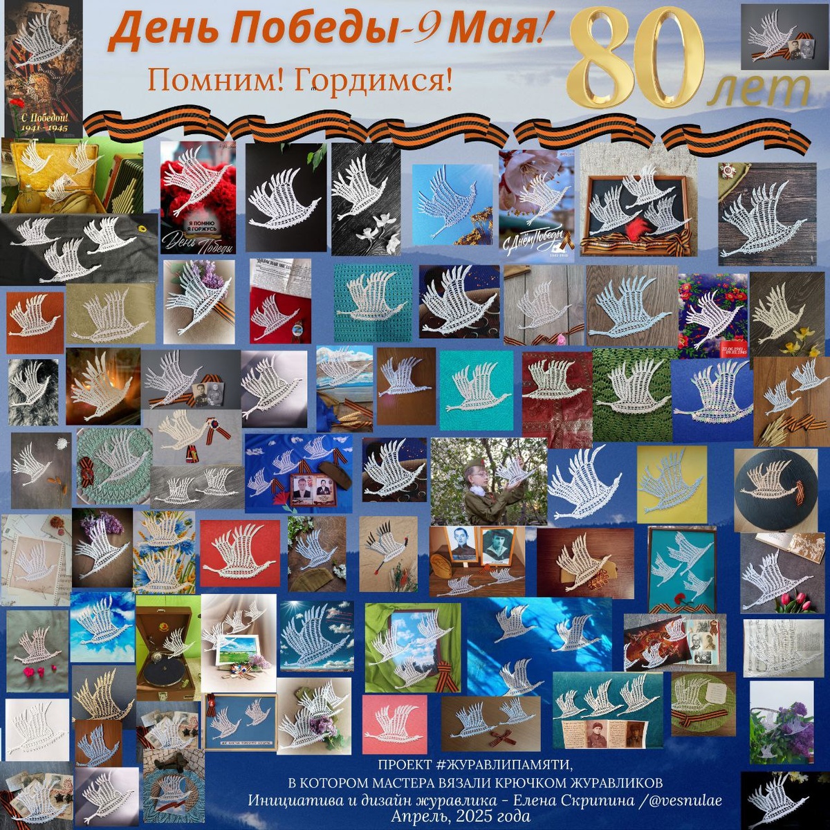 Сегодня великий день — 9 Мая, праздник мужества, подвига и вечной памяти. День Победы, который навсегда останется в наших сердцах. Мы помним, гордимся и чтим наших героев — воинов-победителей, которые подарили нам мирное небо и свободу. Их подвиг бессмертен, и наша благодарность безгранична. В этом году мы создали особый символ памяти — белых вязаных журавликов. Каждая петелька, каждый журавлик — это частичка нашей души, нашей благодарности. Когда мы вязали их, мы думали о своих дедах и прадедах, о тех, кто сражался за Родину. Эти журавлики — не просто нитки, это наша память, наша любовь и наша связь с поколением победителей. Пусть этот день будет наполнен светлой грустью, гордостью и единством. С праздником! С Днём Победы! Мы помним. Мы благодарим. Мы наследуем вашу доблесть.