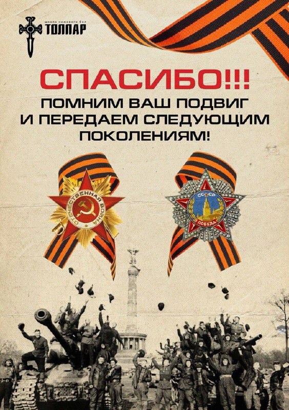 С Днём Великой Победы! Пусть память о подвиге героев, отстоявших мир и свободу, навсегда останется в наших сердцах. Спасибо ветеранам за мужество и стойкость, а павшим — вечная слава. Желаем всем мирного неба, добра и гордости за великую историю, которую мы обязаны бережно хранить. С праздником! 🎖️🌺