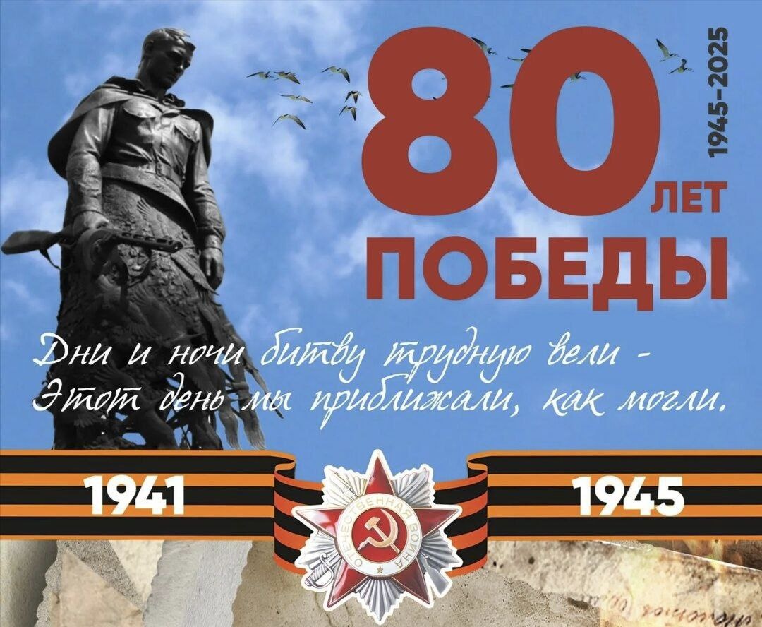 9 мая — священная дата в истории нашей страны! Это день славы и великого подвига тех, кто отстоял свободу и независимость нашей Родины, это символ несгибаемого духа, веры и самоотверженности. Этот день навсегда останется символом мужества, стойкости и героизма нашего народа. Мы гордимся всеми, кто прошёл суровые испытания войны, защищал нашу Родину и подарил нам мирное небо над головой. Благодаря подвигу нашего народа мы можем жить свободно, любить свою страну и передавать будущим поколениям любовь и уважение к истории нашей Родины. В 80-ю годовщину Победы мы отдаем дань уважения героям войны и трудового фронта. Пусть их доблесть всегда будет для нас примером, а память и знания об их бессмертном подвиге мы будем сохранять и передавать от поколения к поколению. Пусть память о героях живёт вечно! Помним! Гордимся! С праздником Великой Победы!