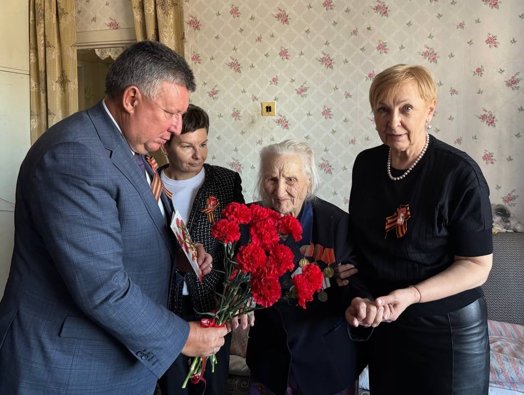 ⭐ Начальник Красноярской региональной дирекции железнодорожных вокзалов Александр Суховецкий совместно с представителями кадрового блока, председателем совета молодёжи и председателем первичной профсоюзной организации поздравили с Днём Победы труженицу тыла Валентину Ивановну Белозёрову.
