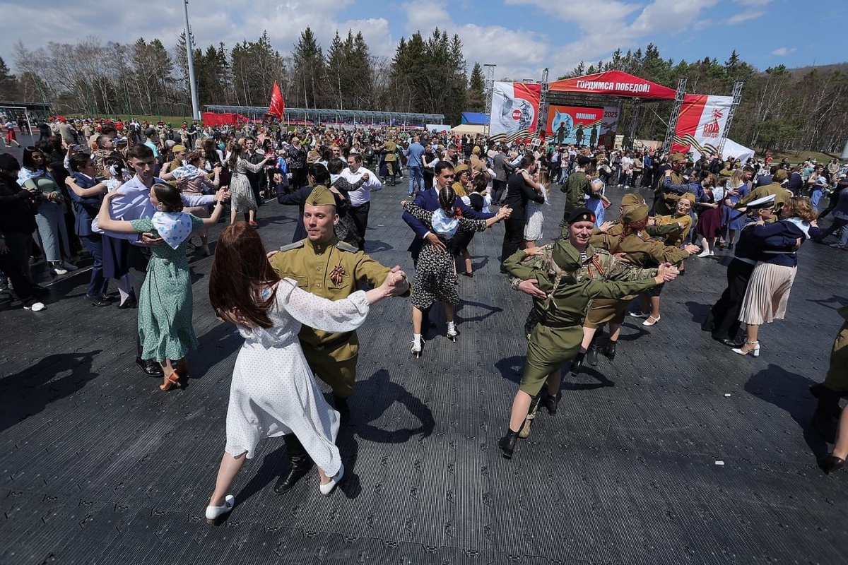 С танцем – к Победе!🔥 Патриотическая акция «Триумф Великой Победы!» впервые состоялась в Южно-Сахалинске. В мероприятии на стадионе «Космос» в городском парке приняли участие свыше 500 пар, которые станцевали вальс под песни военных лет. Среди них – школьники, студенты, военнослужащие, представители общественных организаций и сотрудники администрации и образовательных учреждений Южно-Сахалинска. Акция стала символом единства и гордости – она призвана сохранить память о героизме советского народа и выразить благодарность и уважение ветеранам за их подвиг 🙏🏼 Спасибо всем, кто принял участие! Это было очень красиво и трогательно! 💗 💬 @ysakhalinsk