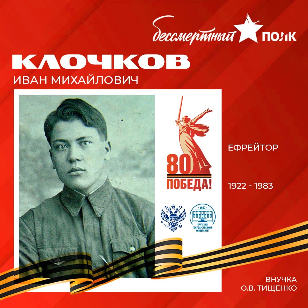 🏵 Иван Михайлович Клочков - Ефрейтор, снайпер, образец упорства и мужества! Иван Михайлович служил в 145-м отдельном запасном огнеметном батальоне 1266-го стрелкового полка 385-й стрелковой дивизии Западного фронта! Призванный в РККА 12 октября 1941 года Ермаковским РВК Красноярского края, Иван Михайлович проявил себя как исключительно трудолюбивый и отважный воин. Из наградного листа: “В период работ по совершенствованию обороны отряда показал образец упорного труда, перевыполнения нормы выработки в два раза. Находясь в обороне и выходя в снайперские засады, уничтожил 3-х немецких солдат.” За свой героизм Иван Михайлович Клочков был награжден медалью «За отвагу»! #мыпомним 🎗