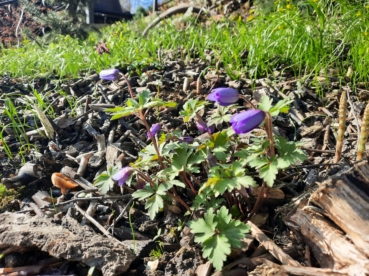 Анемоны Бланда взрослые то откроются, то закроются. А молодняк только выползает, даже бутоны пока не везде видны. Нечего сфотографировать, чтобы похвастаться. Придется терпеть, когда вся лужайка расцветет!