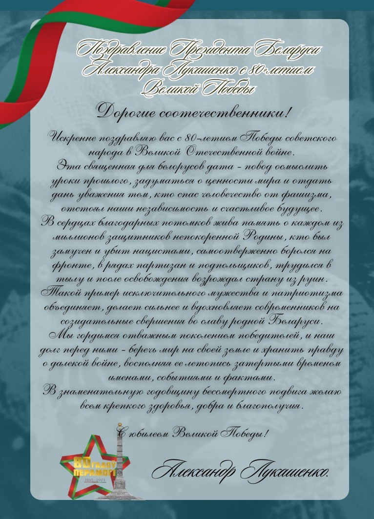 📌Поздравление Президента Беларуси Александра Лукашенко с 80-летием Великой Победы