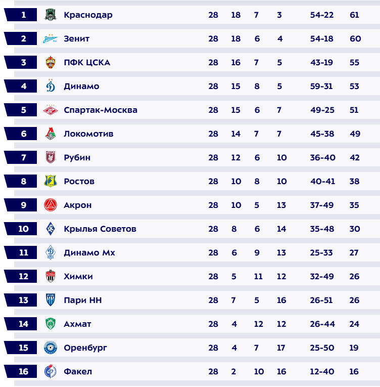 10-12 мая прошли матчи 28-го тура РПЛ.