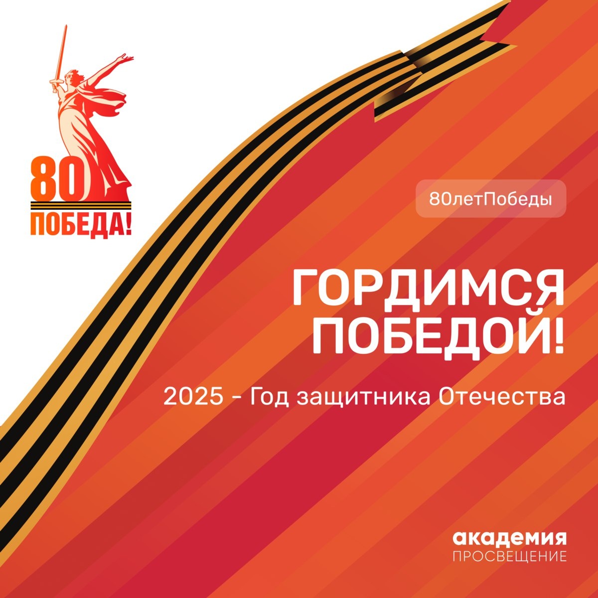 80 лет Победы! 🕊️ 9 мая 2025 года мы отмечаем знаменательную дату – 80-летие окончания Великой Отечественной войны. Это день, который навсегда останется в наших сердцах как символ несгибаемой воли и величайшего подвига нашего народа. Память о героях живёт в каждом из нас. 80 лет назад наши деды и прадеды, проявляя мужество и самоотверженность, защищали родные земли и подарили нам мирное будущее. Мы благодарим ветеранов за их подвиги и помним о каждом, кто внес свой вклад в Победу. С Днём Победы!