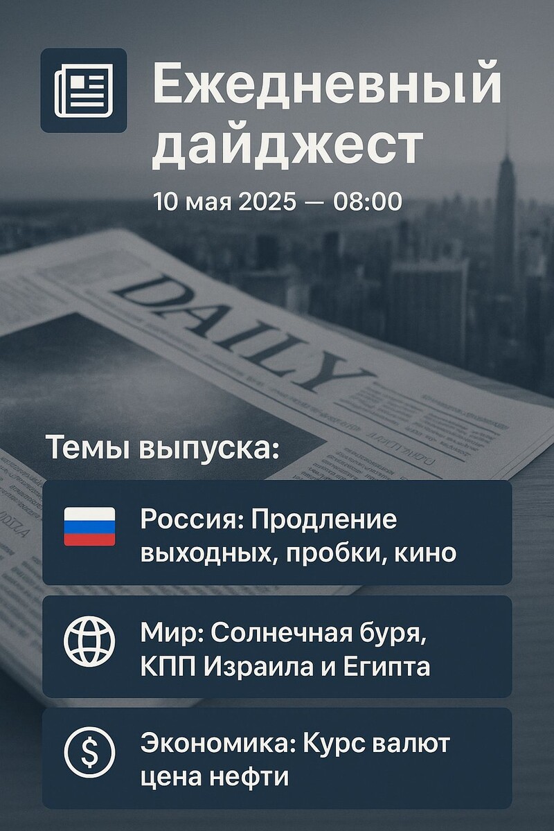 🇷🇺 Россия • 80-летие Победы отметили по всей стране: Более 20 миллионов человек приняли участие в шествиях, парадах и праздничных мероприятиях. (Источник: ТАСС) • Салюты в крупных городах: В Москве, Санкт-Петербурге и других городах прогремели праздничные салюты в честь Дня Победы. (Источник: РИА Новости) • Железные дороги работают в усиленном режиме: РЖД запустили дополнительные поезда на время праздничных дней. (Источник: Интерфакс) 🌍 Мир • ЕС усиливает контроль за TikTok: Евросоюз начал расследование в отношении платформы из-за возможного нарушения закона о цифровых услугах. (Источник: Euronews) • Новая вспышка COVID-19 в Индии: Власти зафиксировали резкий рост заражений в трёх штатах, вводятся меры предосторожности. (Источник: BBC) 💰 Экономика • Курс валют на вечер 9 мая: Доллар — 81,40₽, евро — 92,75₽. (Источник: ЦБ РФ) • Рынки закрылись в плюсе: Индекс Мосбиржи поднялся на 1,2% на фоне праздничного спроса. (Источник: РБК) #интересное #тренды #чтоПроисходит #важноезасегодня