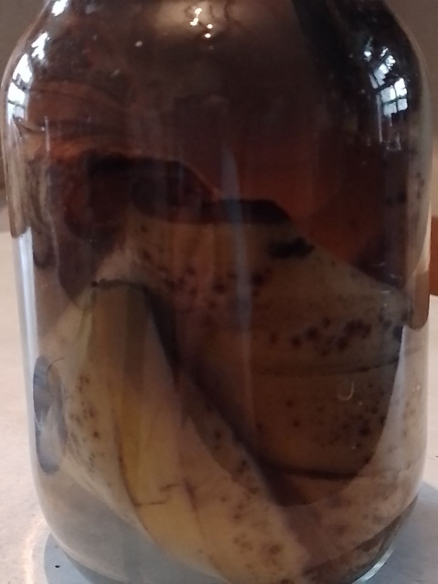 Я в литровую банку сложила три банановые шкурки и залила водой. Настояла один день.