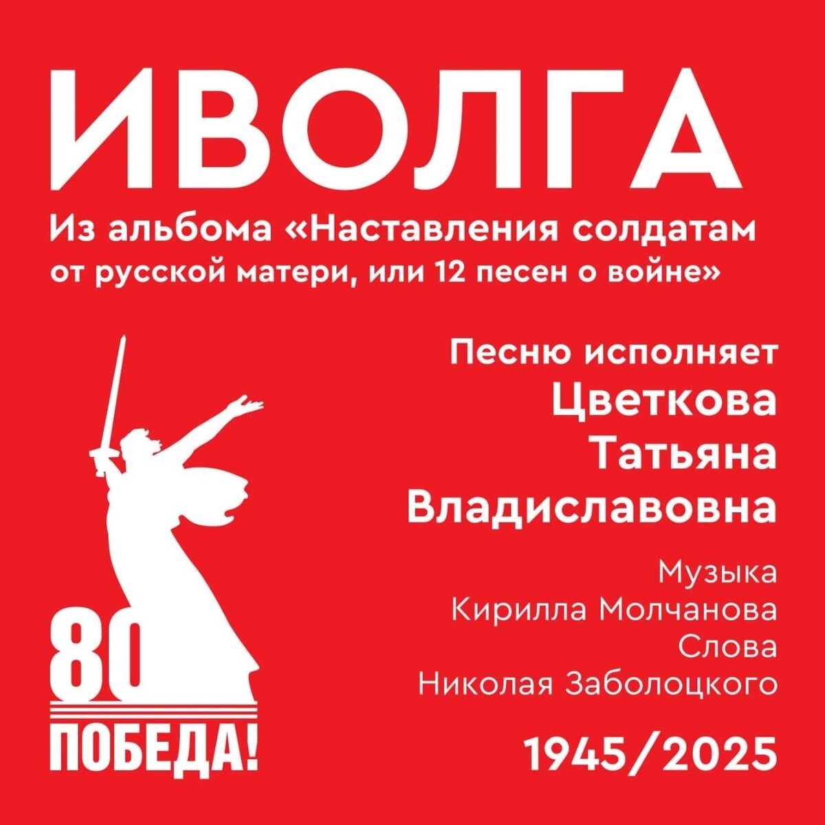 Мои дорогие! От всего сердца поздравляю вас с Праздником нашей Великой Победы!🌹 В желании засвидетельствовать своё почтение и уважение нашим победителям я исполнила для вас песню «ИВОЛГА», которая вошла в мой новый альбом «Наставления солдатам от русской матери, или 12 песен о войне». Искренне♥️ надеюсь, что мой вклад послужит важным наставлением для сегодняшних поколений, укрепит их, позволит понять и осмыслить роль и значение нашей Победы для настоящего и будущего России. ✅ Все песни, исполненные мной в альбоме, представляются для прослушивания и скачивания бесплатно. Песня «Иволга»:👇🏻 Композитор: Молчанов Кирилл Владимирович Поэт: Заболоцкий Николай Алексеевич Исполнитель: Цветкова Татьяна Владиславовна #МастерскаяДетства #ДеньПобеды80