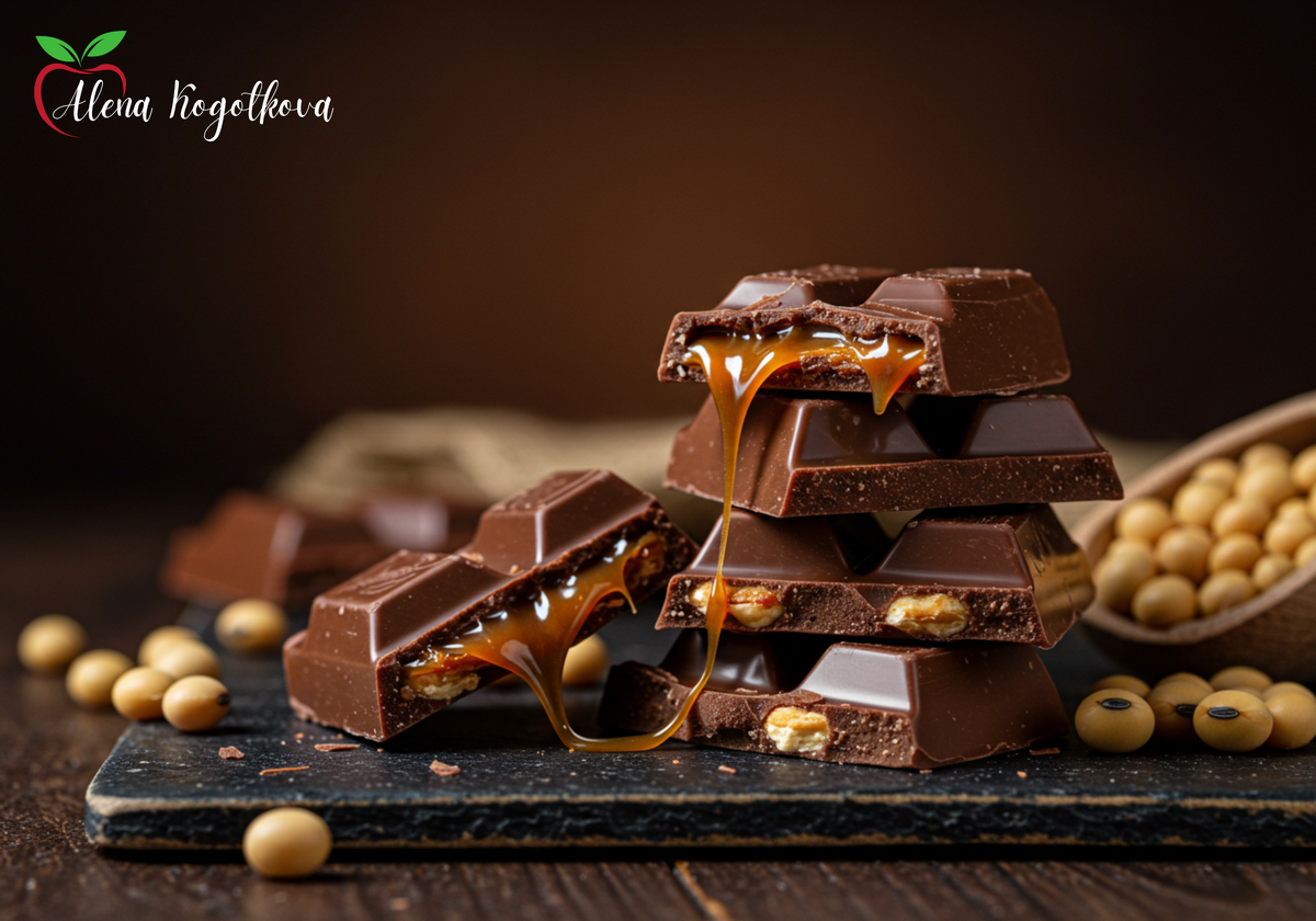 - Шоколад и конфеты – соевый лецитин (E322) заменяет более дорогие эмульгаторы.
