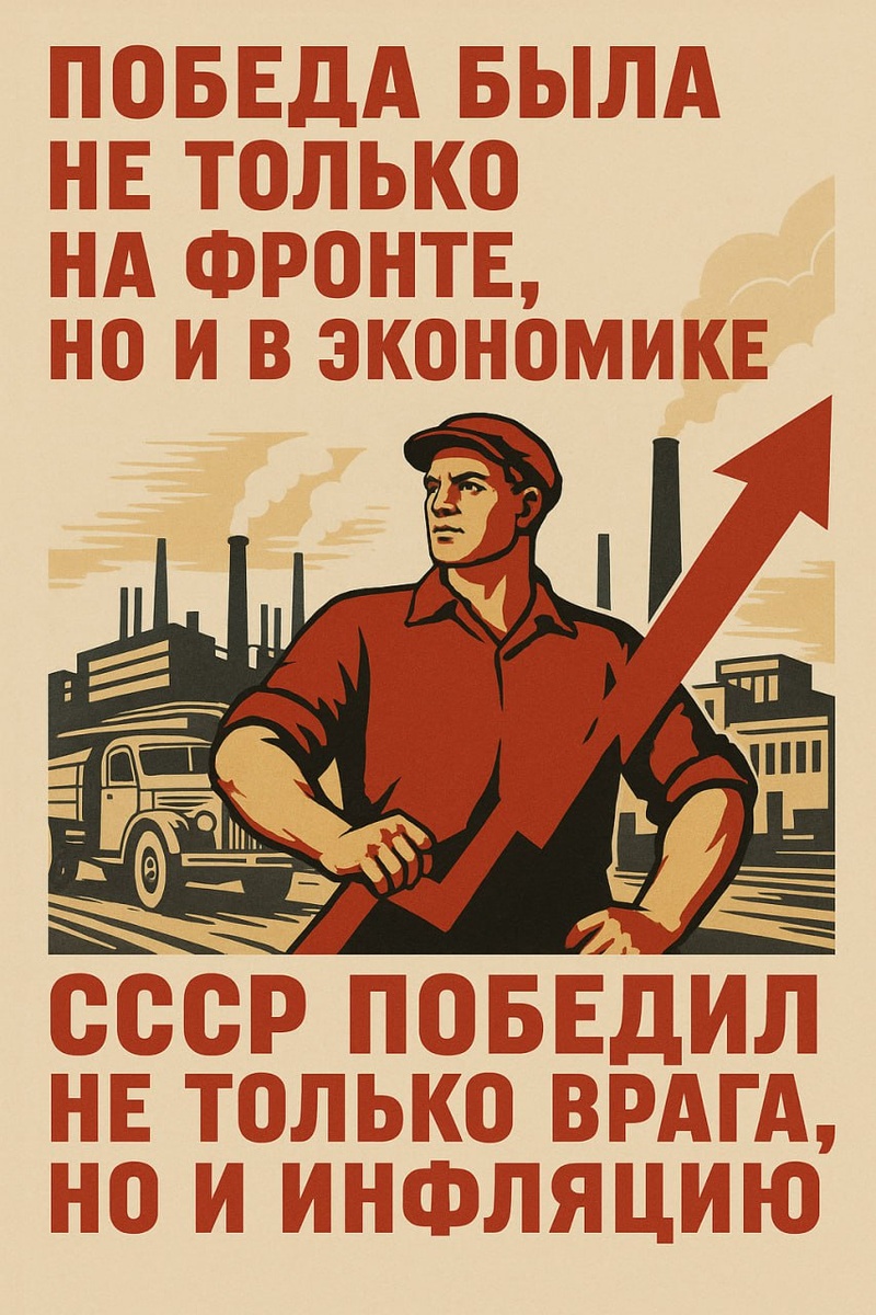🇷🇺 Как СССР победил не только врага, но и инфляцию Когда в 1945 году Сталин и его коллеги объявили об окончательной победе, проблема не закончилась. Война оставила тяжелейшие последствия не только на поле боя, но и в экономике. На руках у людей — много обесценённых рублей, а в государственном бюджете почти не осталось денег. Как же страна справилась с этой ситуацией? Вот те меры, которые помогли справиться с финансовыми трудностями, замедлить инфляцию и, в конце концов, победить не только в войне, но и в экономике. 1️⃣ Налоги: тяжело, но необходимо С первых дней войны началась мобилизация не только армии, но и бюджета. В 1941 году был введён налог на бездетность, который принес в бюджет 8,1 млрд рублей за годы войны. В 1942 году вместо обычного подоходного был введён военный налог, который достигал 2700 рублей в год с каждого работающего гражданина. Колхозникам, конечно, пришлось платить больше — в два раза. Однако семьи фронтовиков получали льготы на налоги. Эти меры обеспечили п