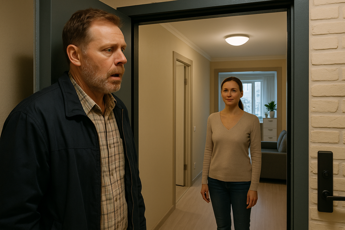 В квартире пахло свежеиспечённым хлебом и кофе. Новые обои, светильники, мягкий ковёр. Там, где раньше был его письменный стол, теперь стояла стойка с книгами. На кухне кто-то насвистывал — мужской голос. Через секунду вышел мужчина лет сорока, в фартуке, с кружкой кофе.