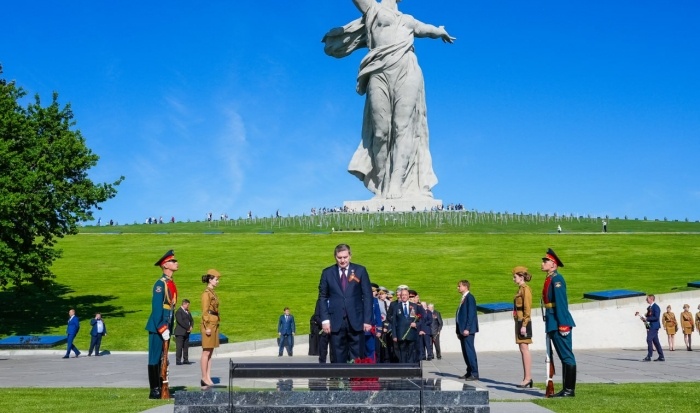 Губернатор Волгоградской области, Герой России Андрей Бочаров вместе с ветеранами, участниками боевых действий, почетными гражданами Волгограда и области, представителями надзорных, правоохранительных и судебных органов, исполнительной власти, религиозных конфессий, депутатами обеих палат Федерального собрания, общественниками и представителями патриотических объединений возложил венки и живые цветы к Вечному огню в Зале воинской славы, а также к могилам Маршала Советского Союза Василия Чуйкова, Неизвестного Солдата и Малой братской могиле. Участники митинга посетили храм Всех Святых и приняли участие в благодарственном молебне за дарованную Победу в Великой Отечественной войне.